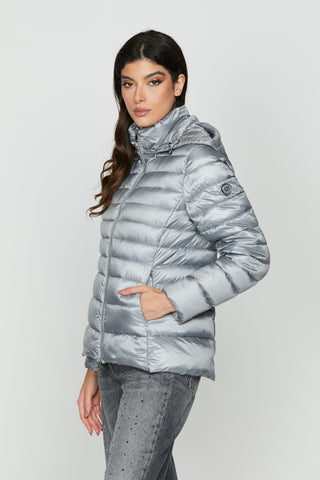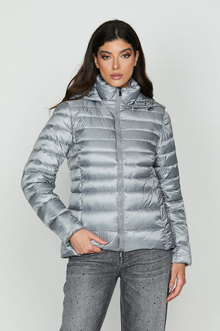 Piumino CLARITA manica lunga con zip senza collo con inserti ecopelle