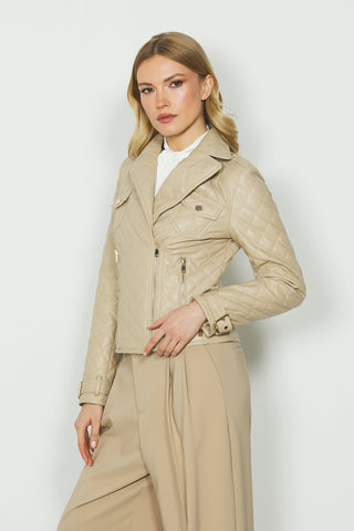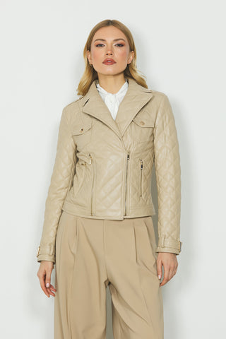 Giubbino WENDY manica lunga chiodo con tasche più cuciture effetto trapunta ecopelle
