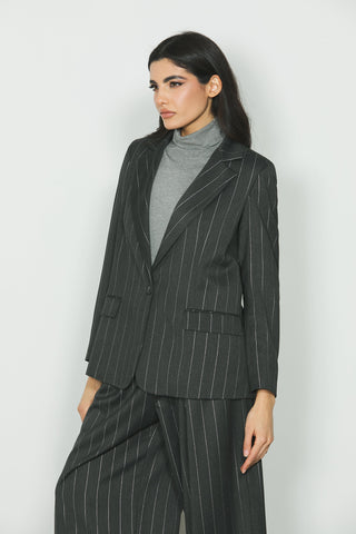 Giacca POPS_A manica lunga 1 bottone con patte gessato più lurex