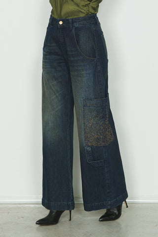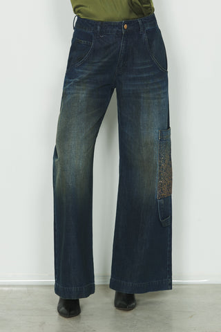 Panta VEGA_21 v.media con tascone più strass più sporcature cargo fit in blue denim