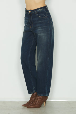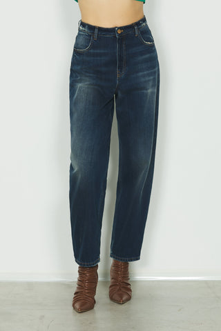 Panta CARLA_21 baggy fit vita media 5 ts con rotture cintura in blue denim