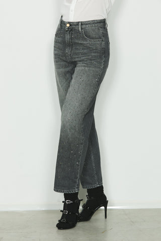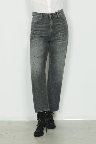 Panta CARLA_30 vita media 5 ts con strass baggy fit in black denim