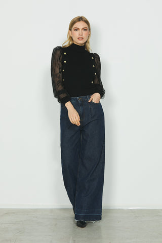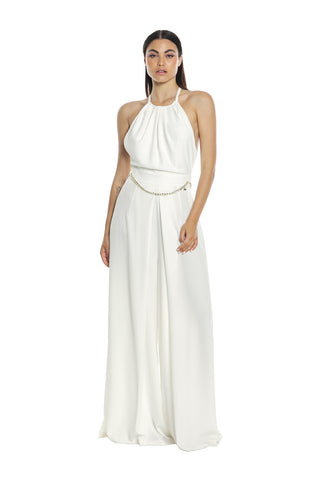 Tuta GOLDENA top scollata retro cavallo basso gamba larga più catena