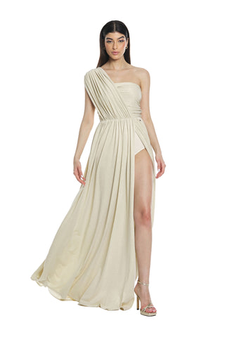 Abito ACUBENS_A lungo monospalla incrocio più arricci plisse' lurex