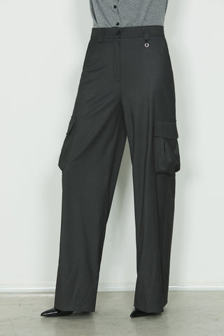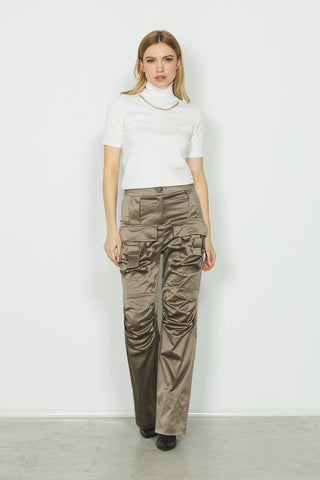 Panta VANIA vita alta con tasconi più fibbie con pieghe più tagli ginocchia raso