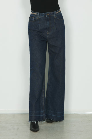 Jeans REECE vita alta 5ts con fondo sfrangiato più catena logo in blue denim