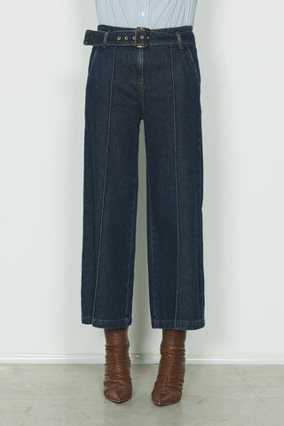 Jeans WALTER vita alta capri con ts francesi più cintura più fibbia logo in blue denim