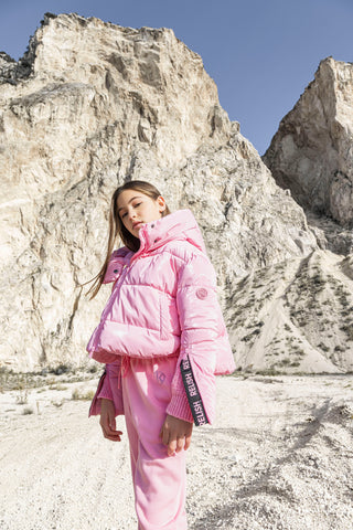 Piumino GIAMINA corto manica lunga più dett.logo più cappuccio più tasche più coulisse vinile
