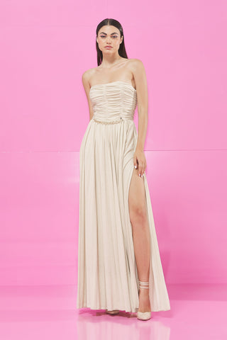 Abito BEKON lungo fascia con catena dav. lurex plisse'