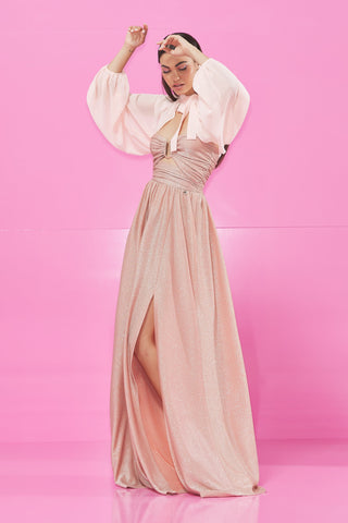 Abito ERITRITE lungo cut-out fascia arricci più anello più zip retro lurex
