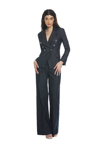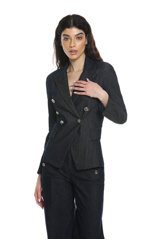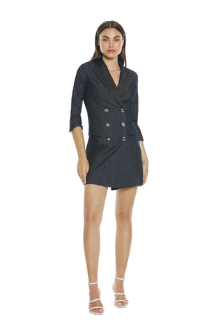 Abito ATHELSTAN corto m.3/4 effetto giacca doppio petto con tasche denim