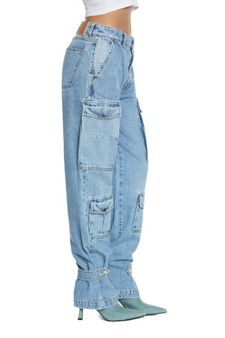 Panta PATTY_2 vita alta con tasconi più laccio fdo cargo fit denim blu