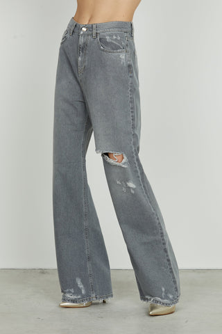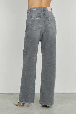Jeans GISELLE_3 vita media 5tasche con rotture loose fit denim