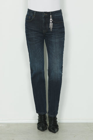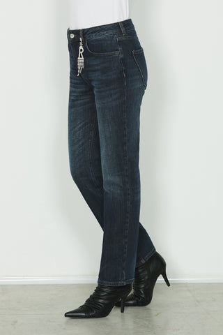 Jeans CINDY_23 vita media 5 ts con pass.logo strass cigarette fit in blue denim