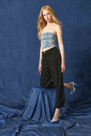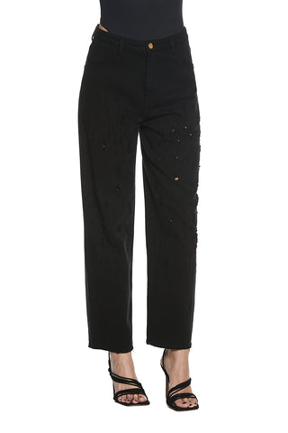 Panta CARLA_1 vita media 4 tasche con micro rotture baggy fit bull