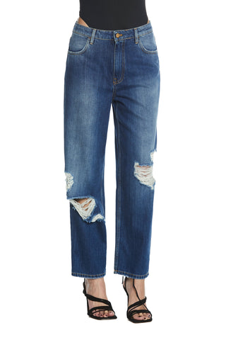 Panta CARLA_2 vita media 4 tasche con rotture ginocchio baggy fit denim blu