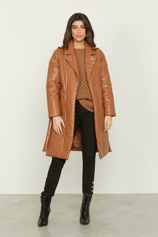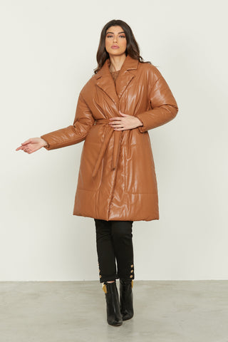 Piumino SARGENTO lungo manica lunga con tasche più cintura ecopelle