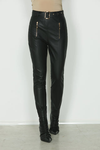 Panta FABIA vita alta con cintura più fibbia logo più zip in ecopelle