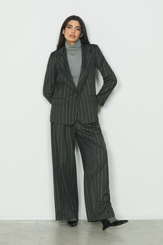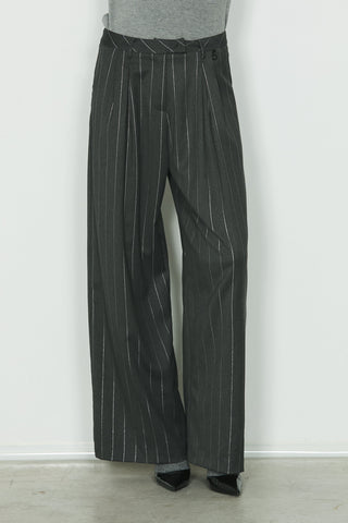 Panta KRIZIA_A vita alta con bacia piega più tasche francesi gessato con lurex