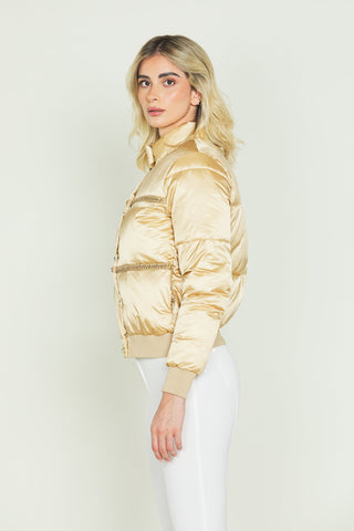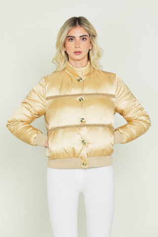 Piumino SHINOBU manica lunga bomber con bottone più ins.ecopelle più catene più bordi cost.raso