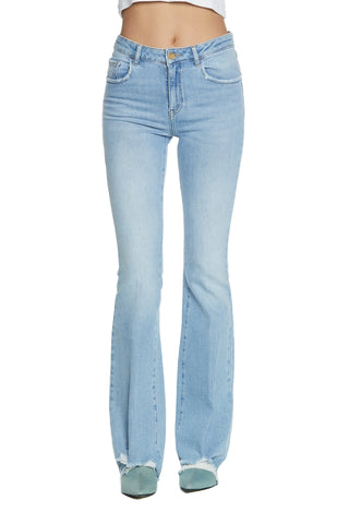 Panta SHIFFER_2 vita media 5tasche con rotture flaire fit denim blu