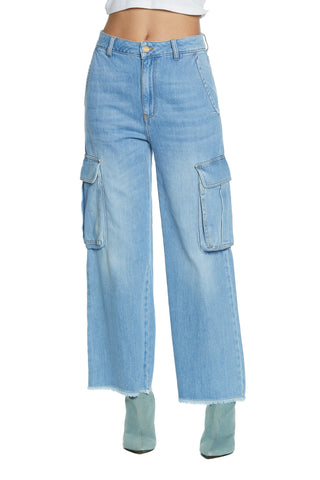 Panta TYRA_2 vita alta con fdo sfrangiato cargo fit denim blu
