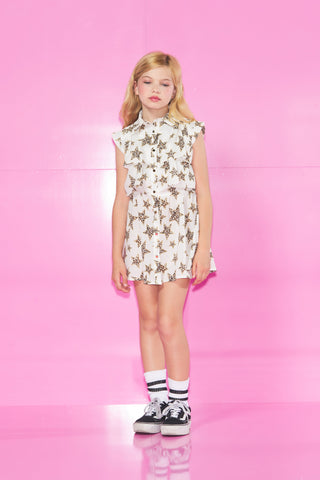 Abito OVAN Corto mezza manica con Gale più Bottoncini Fantasia Stelle Animalier