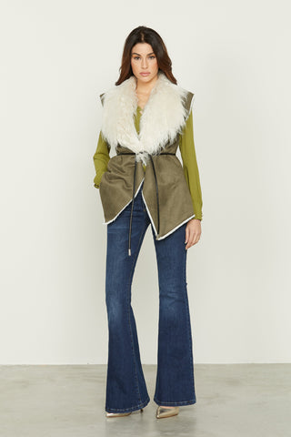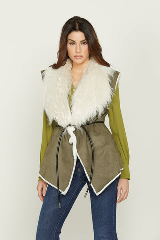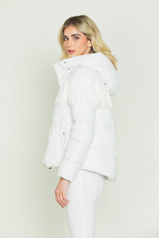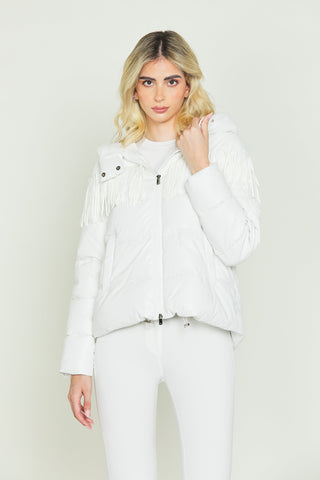 Piumino ARKAB_PRIOR manica lunga asimmetrico con capp. Più frange più coulisse ecopelle