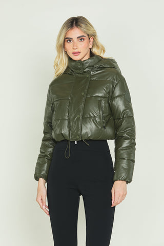Piumino ALBADAH con manica lunga con cappuccio stac. Più zip più coulisse ecopelle