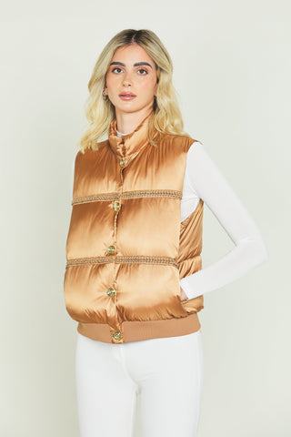 Piumino SAYOKO smanicato con bottone più inserti ecopelle più catene più bordi cost.raso
