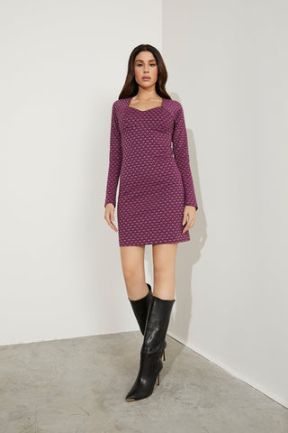 Abito CUDDIS_J corto manica lunga tubino con taglio micro fantasia