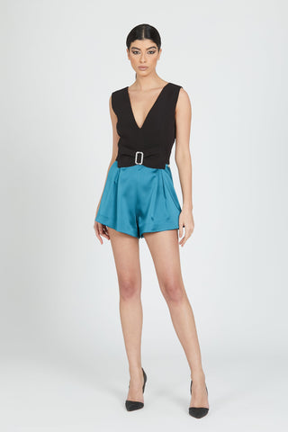 Jumpsuit MAGICA corta doppio scollo a v con fiocco più fibbia strass