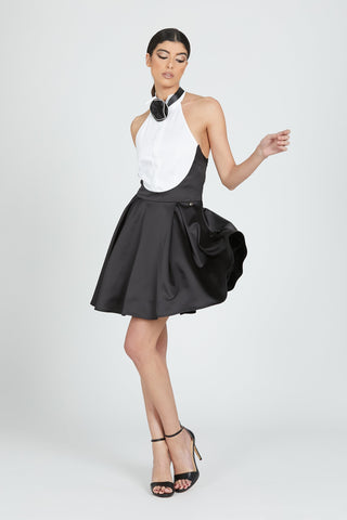 Abito GHENT corto effetto smoking più collarino fiore strass più pinces