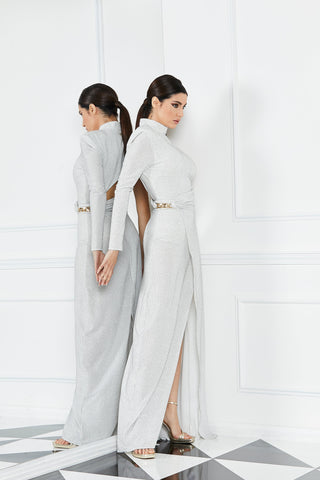 Abito ATENA corto manica lunga con apertura spalle più cinturino più fibbia gioiello