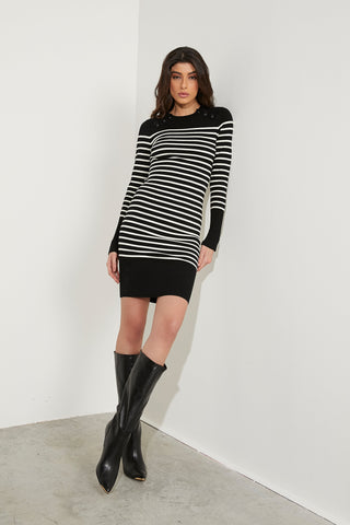 Abito DAFNE corto manica lunga con risvolto più bottoni righe