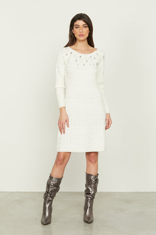 Abito ESTIA corto manica lunga lavorazione trecce più perle più cabochon