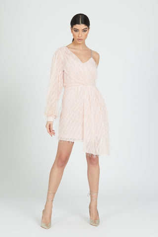Abito PAZZIA corto manica lunga asimmet.bretella catena strass fil coupe' lurex