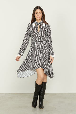 Abito CHIC corto manica lunga con doppio colletto più polso più arric.vita asimmetrico logo