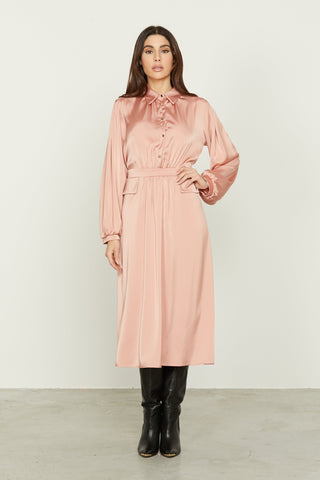 Abito DANBEY_A midi manica lunga palloncino con colletto più bottoni più patte