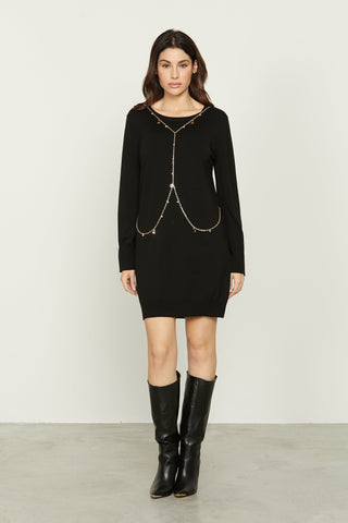 Abito METICO corto manica lunga scollo v con applicazione catena