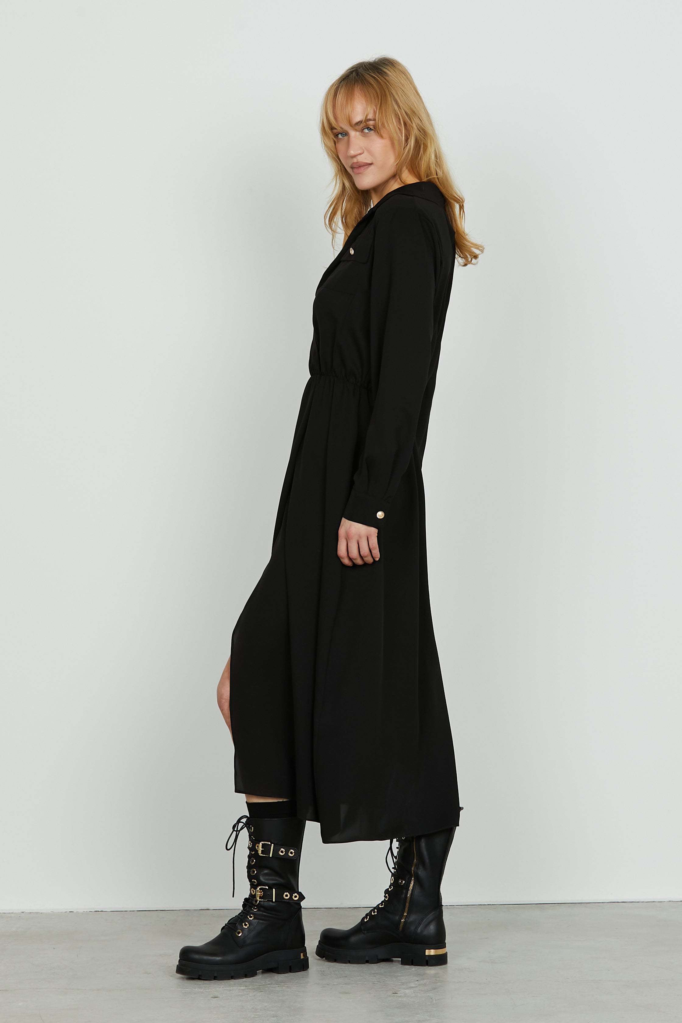 Abito NEGO midi manica lunga sc.incrocio più tasche più elastico più gonna portafoglio