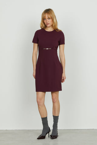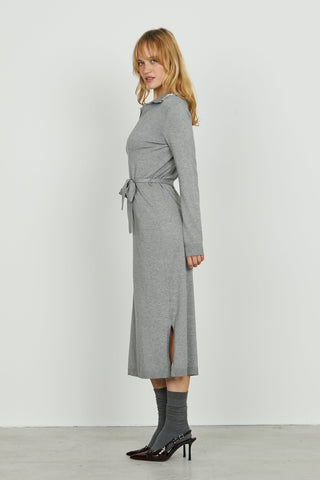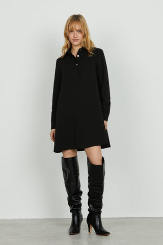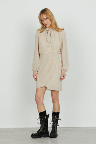Abito MAUI corto manica lunga scollo v con colletto più applicazione strass più cintura