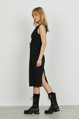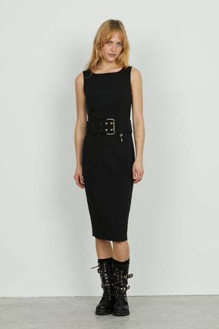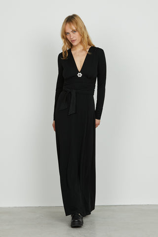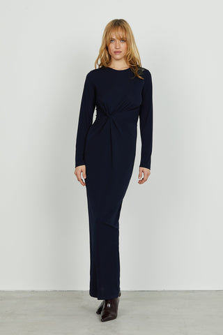 Abito ELITS midi manica lunga scollo incrocio con fusciacca più pieghe asimmetrico