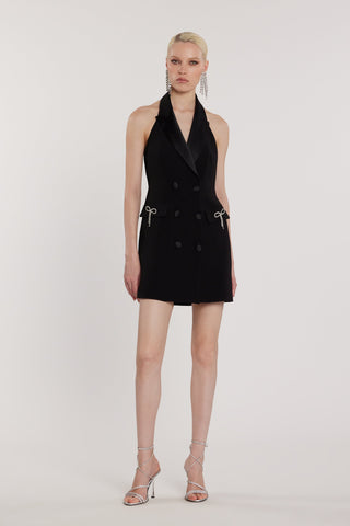 Abito LOSANGELES_A corto scollo alla americana effetto giacca più bottoni più fiocchi strass