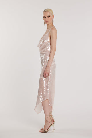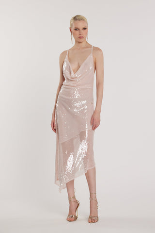 Abito BELOVED midi collo morbido top incrocio retro full paillettes