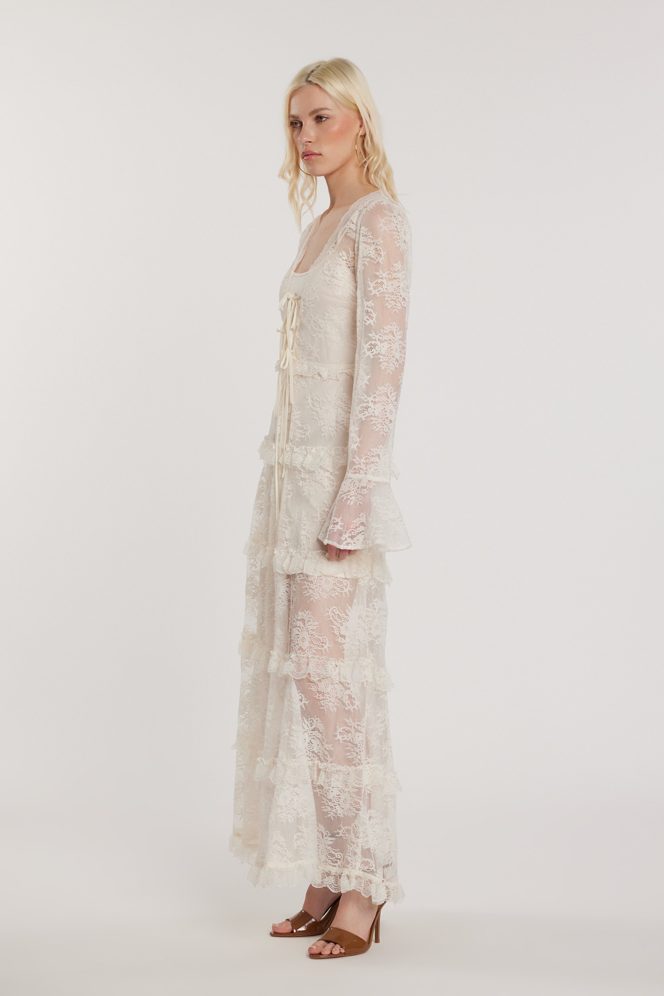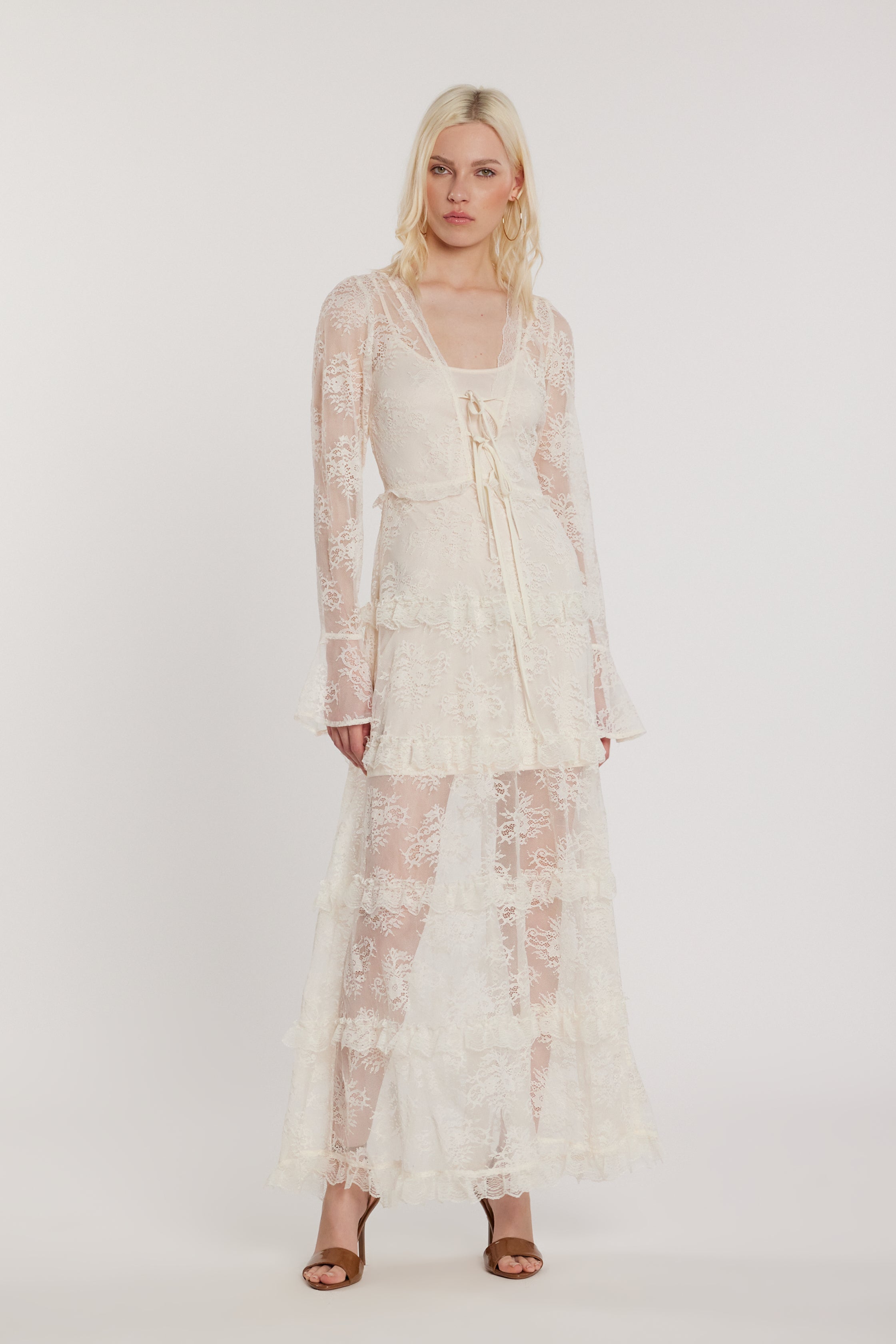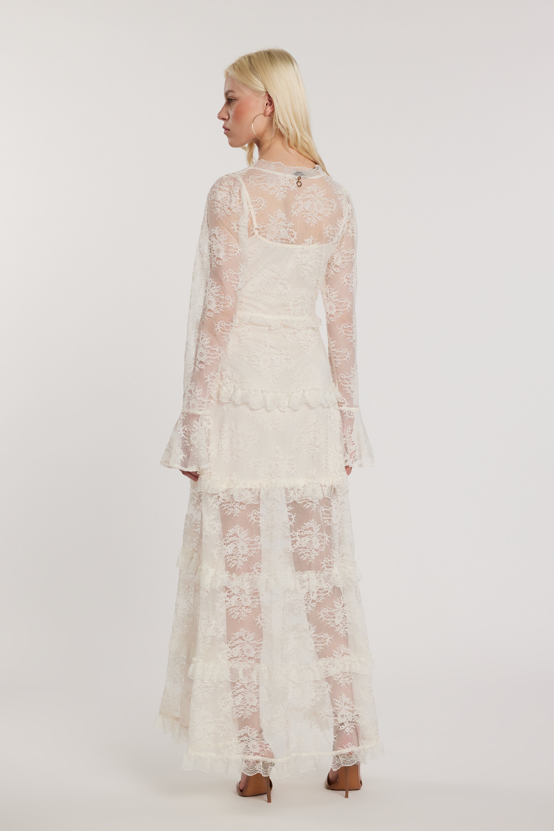 Abito BECKAM lungo maniche lunghe con sottoveste con laccetti più rouches pizzo