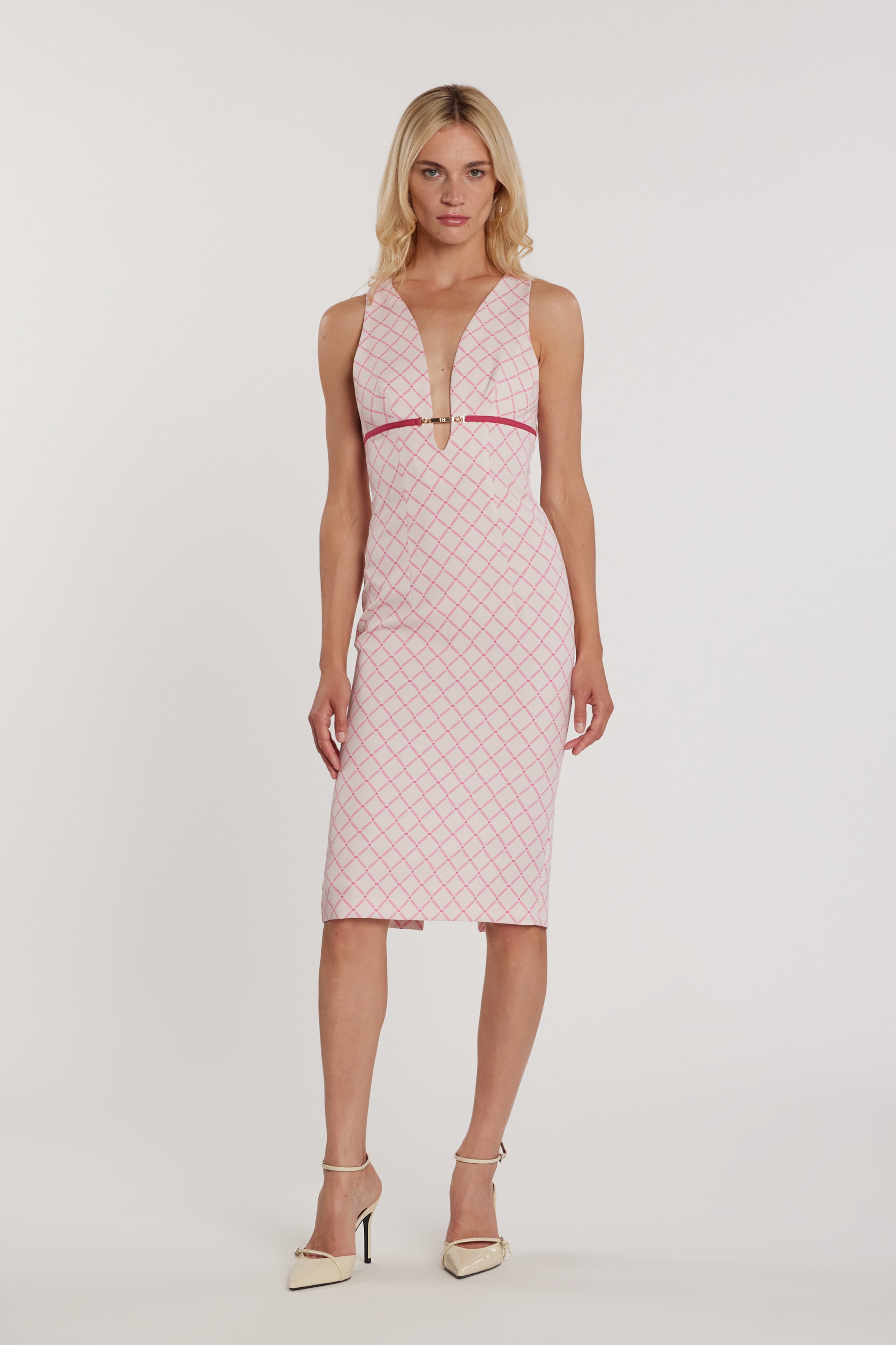 Abito CASSELI midi smanicato tubino scollo a V più dettagli cintura st.logo all over