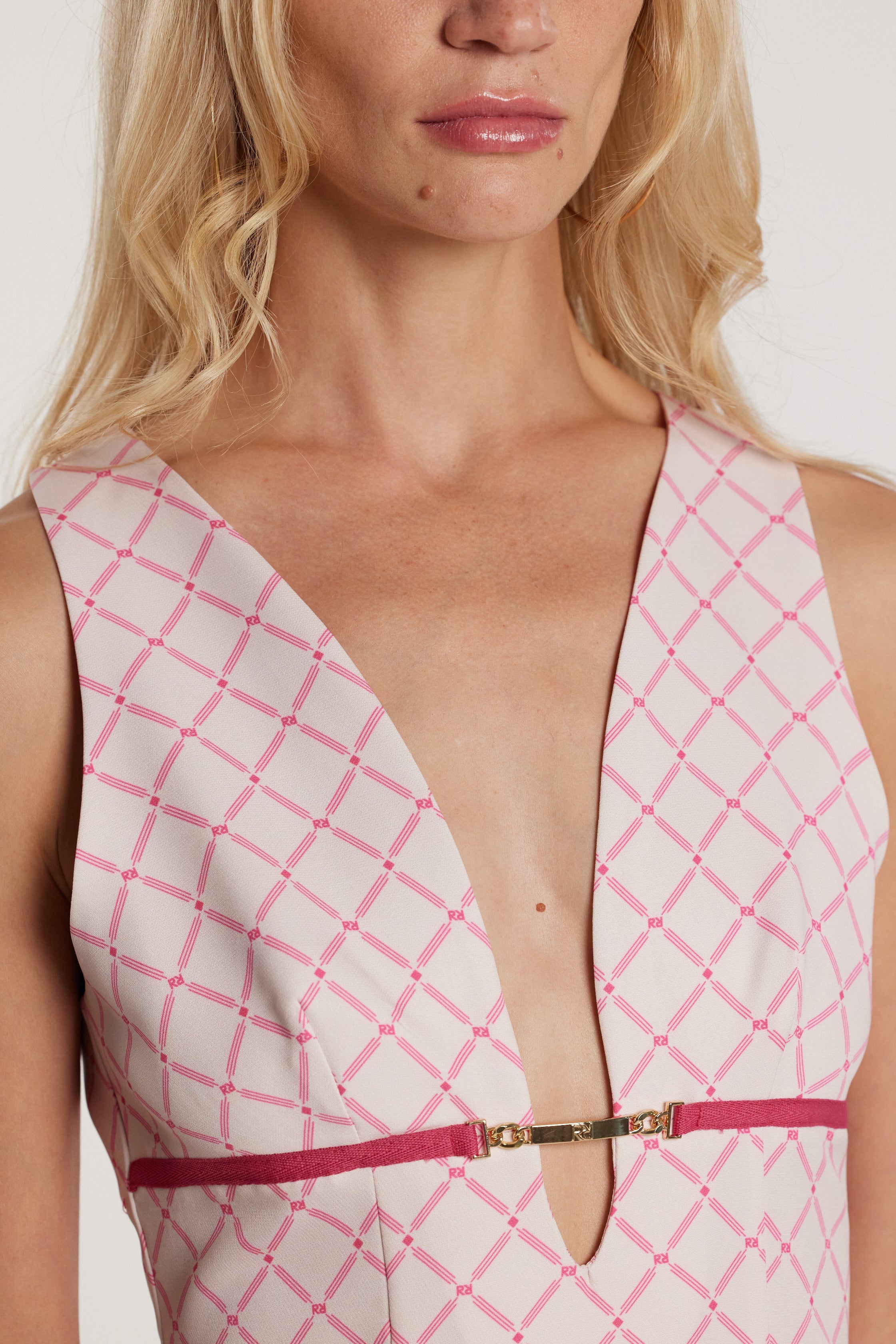 Abito Casseli midi senza maniche tubino con scollo a V e cintura logo all over, un capo glamour e contemporaneo. La cintura logo definisce il punto vita, mentre il tubino valorizza la silhouette con stile moderno, perfetto per outfit eleganti e fashion-forward.