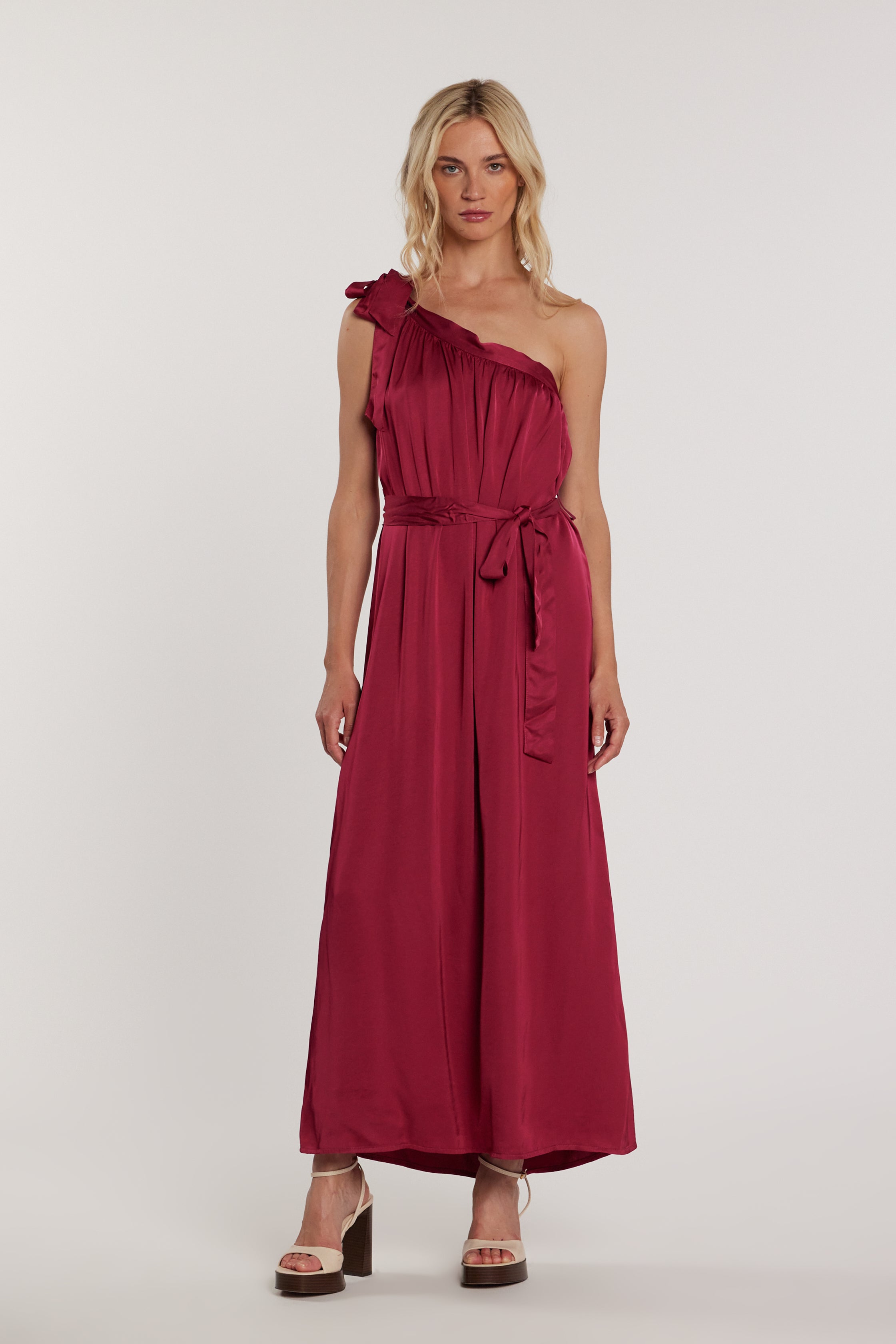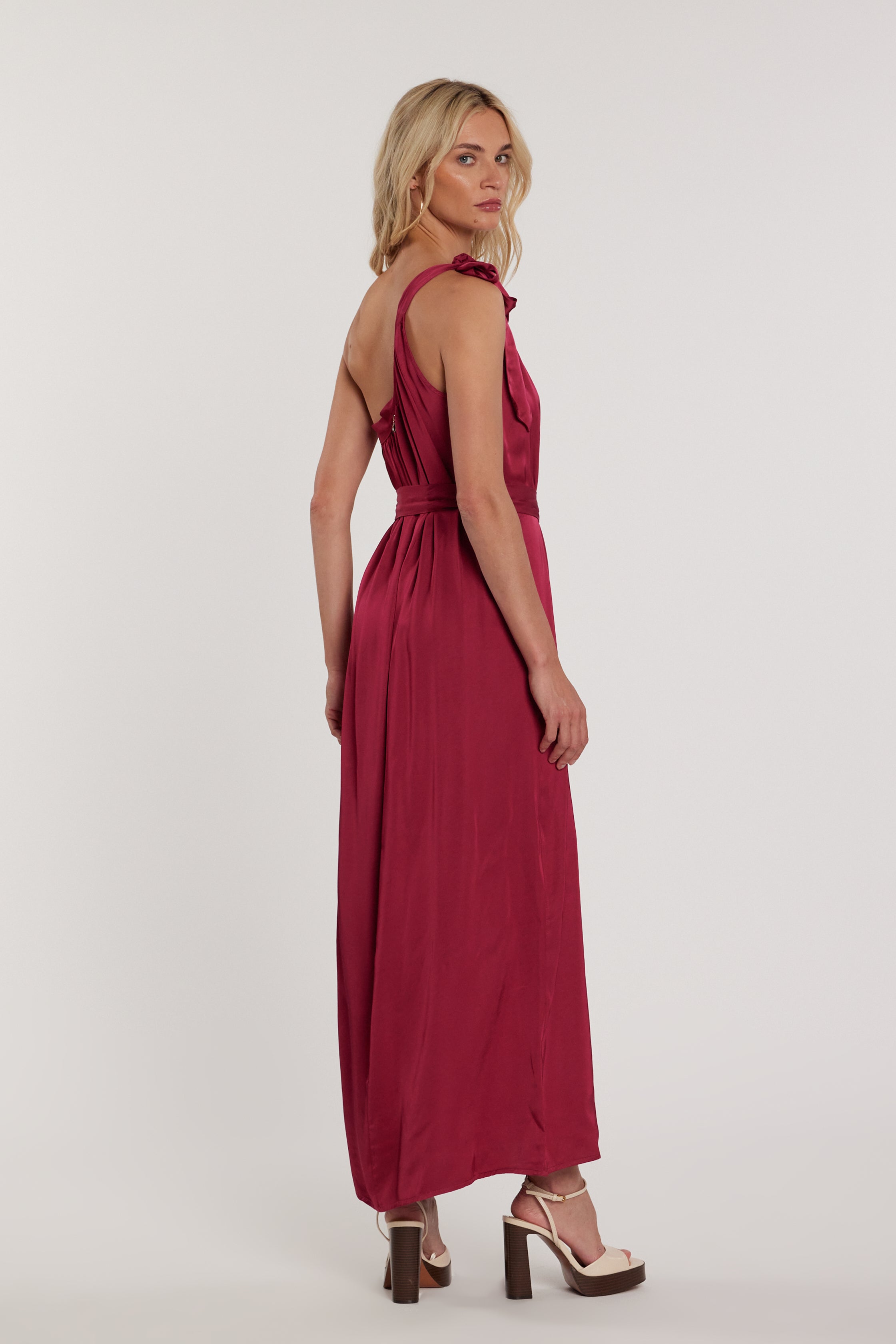 Abito Fiokko lungo senza maniche con scollo alla americana e fusciacca al collo, un modello sofisticato e romantico. La fusciacca valorizza il collo con femminilità, mentre la linea lunga e fluida dona movimento e leggerezza, perfetto per eventi serali.