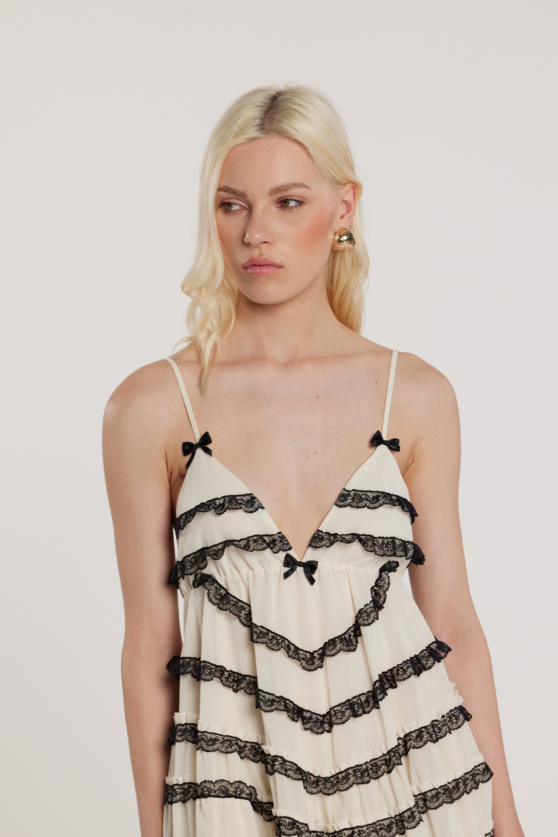Abito SALMY corto smanicato con rouches pizzo più fiocchetti